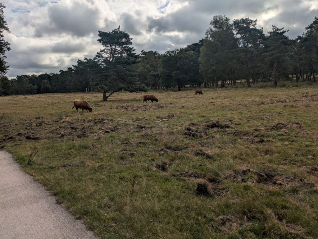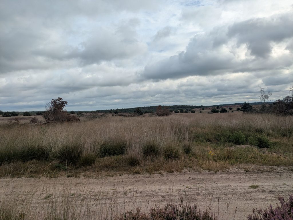 Das Wetter hat sich entgegen aller Vorhersagen bislang (auch jetzt am Nachmittag, an dem es aber ganz sicher und garantiert regnen sollte) hervorragend gehalten. Nur es war zwischenzeitlich, wieder durch den recht starken Wind bedingt, etwas kühl, vor allem in den etwas bewaldeten Gegenden, in denen die Wege eher im Schatten der Bäume als offen zwischen den Feldern verliefen.